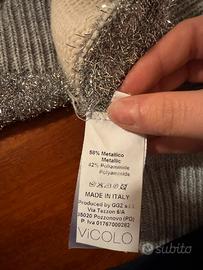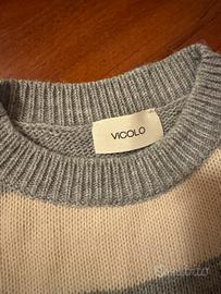 Maglione Vicolo a righe bianche e grigie con dettagli metallizzati. Usato 1 volta. Taglia unica come da foto, veste comodamente anche una M.