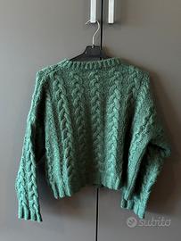Maglione crop VICOLO verde, con trecce, taglia unica.