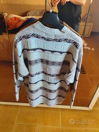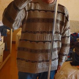 Maglione in buone condizioni ha solo un micro foro come potete vedere in foto. La taglia corrisponde a una XXL come vestibilità io sono alto 1,75 x 70 kg.