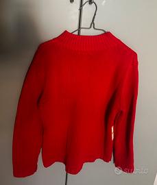 Maglione in lana vintage rosso con ricami floreali.
