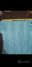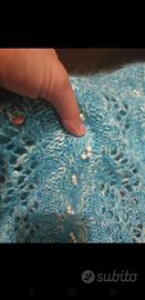 maglione fatto a mano fine anni 80, in ottimo stato, solo da riprendere qualche perlina. color azzurro acceso e bianco, misure in foto