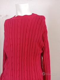 Maglione vintage Sisley color rosso acceso, lavorazione a trecce (cable knit) su tutta la superficie. Anni 90 made in Italy Modello girocollo con collo, polsini e fondo a costine, vestibilità morbida e confortevole. Perfetto per mezza stagione Composizione: 100% cotone Colore rosso Condizioni ottime come lo stato di conservazione Fit leggermente oversize (in linea con lo stile vintage). Tg. L/XL Misure Spalle 55 cm Torace 59 cm Lunghezza manica 59 cm Lunghezza totale 70 cm