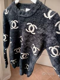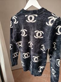 Maglione vintage da donna, taglia Small, in cotone, colore nero con fantasia grafica all over a contrasto.