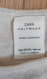 Maglione Zara, color tortora, in cotone, con due tasche sul davanti. Taglia 13/14 anni ma veste tranquillamente la XS da donna. Nuovo mai indossato