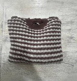 Maglione a righe marroni e bianche, stile Y2K. - Fantasia a righe orizzontali. - Collo rotondo. - Maniche lunghe. - Fondo e polsini a costine.