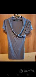 Vendo n° 2 Maglioni lunghi a maniche corte, con scollo a V incrociato e finto bottone laterale.