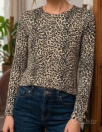 Maglia a maniche lunghe morbida, elasticizzata con fantasia leopardata e riflessi in lurex. Marca: Ori Moda (Made in Italy).