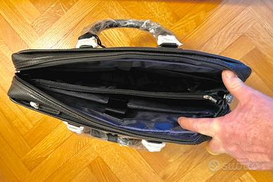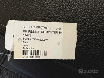 Borsa in pelle nera unisex Brooks Brothers nuova, ancora incartata. È ottima sia come borsa porta laptop che come borsa da ufficio. Vari scomparti interni e uno esterno chiuso con zip. Cerniera con lucchetto. Completa della sua tracolla. Misura 45x32x12 centimetri. Pagata 320 euro.
