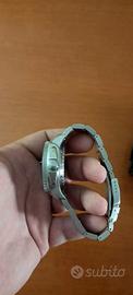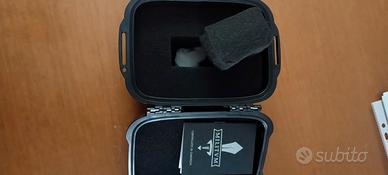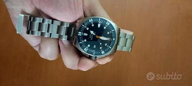 Orologio Militum Fortezza Marina, un diver professionale progettato per resistere fino a 1000 metri di profondità. Questo modello specifico, prodotto dal marchio italiano Militum, presenta una cassa massiccia da 42 mm in acciaio 316L e una ghiera girevole unidirezionale in ceramica. Un dettaglio distintivo visibile nel tuo orologio è la lancetta dei minuti arancione, tipica delle versioni come la M1 o la M2. Ecco le caratteristiche principali del Militum Fortezza Marina: Resistenza all'acqua: Sub 1000 metri con valvola per la fuoriuscita dell'elio. Materiali: Vetro zaffiro antigraffio e ghiera in ceramica. Edizione Limitata: 50 pezzi. Questo modello nello specifico è 1/50. Movimento: È un orologio automatico movimento myota.