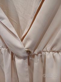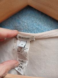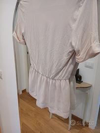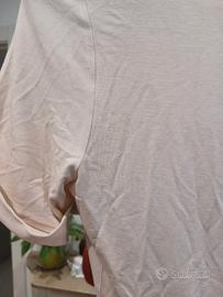 maglietta dal colore rosa confetto, perfetta prr le giornate calde - scollo a V profondo con risvolti - maniche corte arrotolate - elastico in vita - bottone decorativo sul davanti - brand Intimissimi - misura S