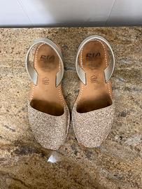 Scarpe tipiche della zona di Maiorca Glitterate, con sovrasuola in cuoio Marca Ria, made in Spain