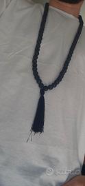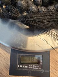 🧞♂️Al fine di venirvi incontro con il miglior prezzo possibile vi invito a dare un'occhiata anche agli altri articoli che ho attualmente in vendita. Questa Mala è un accessorio dal carattere forte e materico, realizzato interamente con grani di vera pietra lavica dal diametro di 1 cm ciascuno. La superficie di ogni grano presenta le tipiche porosità della roccia vulcanica, rendendo l'oggetto piacevole al tatto e visivamente molto distintivo grazie al suo nero profondo e opaco. Oltre all'estetica ricercata, questa pietra porta con sé una storia millenaria legata alla forza della terra. In cristalloterapia, la pietra lavica è considerata una pietra di radicamento e protezione: si dice che aiuti a gestire le emozioni più intense e a ritrovare il proprio equilibrio interiore nei momenti di cambiamento. È un elemento che simboleggia la resilienza, nato dal fuoco e solidificato nel tempo, perfetto per chi cerca un oggetto che richiami la stabilità e la determinazione. Con una lunghezza complessiva di 61 cm quando distesa e un totale di 85 grani, si presta perfettamente sia per un uso meditativo che come elemento di design da indossare o per arredare un angolo dedicato al benessere in casa. Il peso di 184 grammi conferisce una sensazione di solidità e qualità. Al termine della sequenza di grani si trova una nappa nera in tessuto che completa l'estetica essenziale dell'oggetto. Le condizioni sono impeccabili, la struttura è solida e i grani sono perfettamente conservati. Rappresenta un’ottima idea regalo per chi ama gli oggetti dal valore simbolico o per chi cerca un accessorio dallo stile etnico e contemporaneo allo stesso tempo. Disponibile per consegna a mano a Reggio Emilia o spedizione tramite il servizio tutelato di Subito.it.
