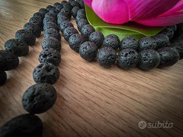 Mala in pietra lavica naturale 85 grani con nappa