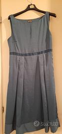 MALIPARMI : vestito blu petrolio, longuette con maglioncino in pura lana color turchese. Vestito in acetato; presenti tasche laterali e cerniera laterale. Vestito indossato 1 vota, maglioncino MAI indossato. Sul vestito davanti 1 piccolo filo tirato da collana. Impercettibile ma lo dico per chiarezza. Taglia 44.
