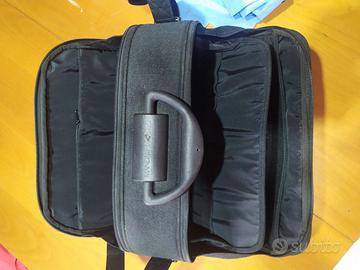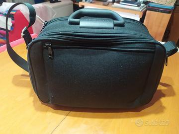 Borsa da viaggio semirigida in tessuto con molti scomparti interni, chiusure a zip, specchio interno tracolla e manico rigido. Nuovo, mai usato.