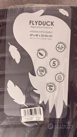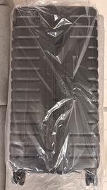 Mandarina Duck FLYDUCK Trolley Medium, nero Nuovo, mai usato. Nuova linea superleggera in policarbonato di Mandarina Duck. Il design è essenziale e contemporaneo e presenta l'iconica texture "MD Diamond" con maxi logo frontale. Le ruote sono doppie e il TSA integrato. Manico telescopico allungabile, maniglia per il trasporto 69L x 33l x 45H cm