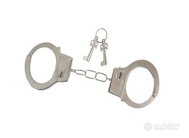 Manette Handcuffs in metallo, progettate appositamente per i costumi, molto realistiche e funzionali (come quelle vere) dotate di un pulsante di sicurezza per un rilascio rapido.