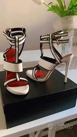 Tg.37 colore bianco con bordi neri e doppio cinturino alla caviglia.
