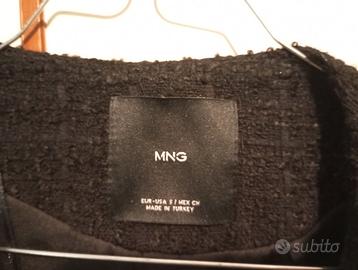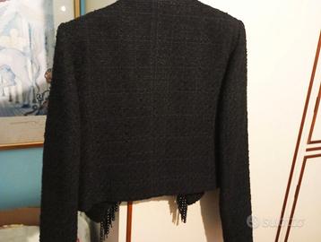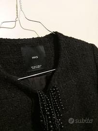 MANGO ORIGINALE GIACCA NERA TWEED DONNA S/M PERLE