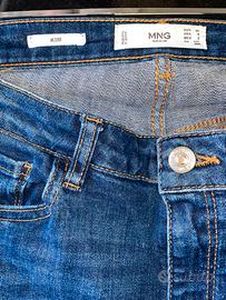 Skinny jeans Kim di mango colore blu scuro. Indossato una soma volta in quanto taglia sbagliata. Denim, con orlo/bordo trapuntato e bottone mosca con chiusura a zip. Lavaggio leggero. Due tasche anteriori e due posteriori, soazio per la cintura.