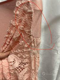 Le maniche lunghe della donna presentano alcuni difetti; si vedano le parti cerchiate in rosso nella foto