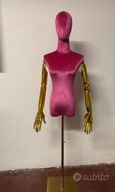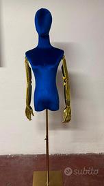 Manichini molto scenografici, rivestiti in velluto con braccia articolate e base stabile in metallo.