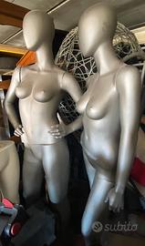 Coppia di manichini su piedistallo – colore argento. I manichini sono usati e presentano lievi segni di usura in alcuni punti, ma risultano in buone condizioni generali. Ideali per negozi di abbigliamento, vetrine o esposizioni. Prezzo: € 70,00 ciascuno / € 120,00 in coppia. Ritiro in loco (no spedizione). Pagamento in contanti alla consegna.