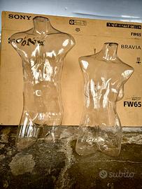 Ci sono due mezzi busto trasparenti, uno uomo e uno donna al prezzo di € 40,00 l’uno.