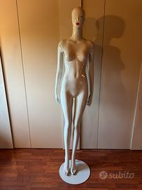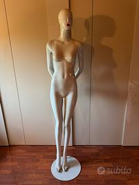 Vendo in blocco 7 manichini donna interi in vetroresina con base rotonda in ferro con attacco al polpaccio.