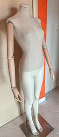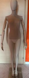 Manichino donna nuovo ancora imballato, il materiale e composto da busto, spalle e testa in tessuto di alta qualità con testa removibile e tappo di chiusura tutto in lino!l le braccia sono in legno massello snodabili e anche le dita delle mani le gambe in plastica e La base e in acciaio inox!! Vero affare vendo la metà del prezzo originale!!