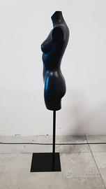 Vendo manichino donna a mezzo busto, colore nero opaco, completo di base in metallo quadrata e asta regolabile in altezza.