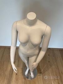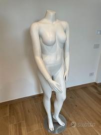 Manichino donna CURVY in materiale plastico duro, coloRE bianco, altezza 170 cm circa con piedistallo in acciaio. Braccia snodate dal busto, polsi snodati dalle braccia, tronco snodato dal bacino. Non spedisco ma consegno personalmente in zona Modena.