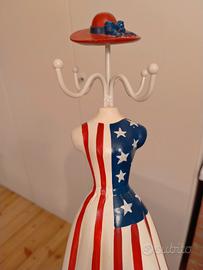 Manichino porta gioielli con i colori della bandiera statunitense.