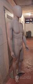 Vendo manichino uomo stilizzato, design moderno, in plastica di alta qualità resistentissima, finitura bianca opaca, base in metallo con attacco al polpaccio che assicura stabilità ed equilibrio. Montaggio rapidissimo con sistema a incastro obbligato per busto, gambe e braccia. Altezza 185 cm, petto 97 cm. Consegna a mano zona Eur o Termini.
