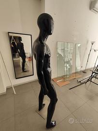 Vendo manichino uomo intero da esposizione, colore nero lucido, ideale per vetrine di negozi di abbigliamento uomo, streetwear e casual.