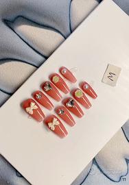 Manicure indossabile, fornita con bastoncino di faggio, salviette imbevute di alcol, strisce adesive e un set di colla gelatinosa (tutto mostrato nella foto), con metodo di misurazione e dimensioni