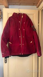 La giacca ha una chiusura frontale con zip a doppio cursore ed una patta antivento superiore chiusa con bottoni a pressione, sui quali è impresso il marchio, leggibile e direzionato.