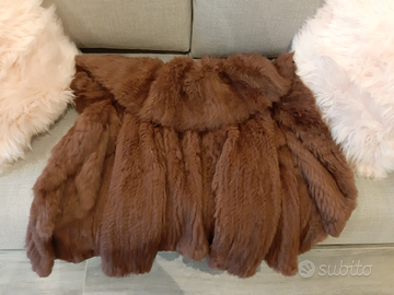 Giacca in lapin lavorato a maglia con collo importante, annodabile, e fusciacca in abbinamento. Taglia 42-46. Medico vende per inutilizzo.