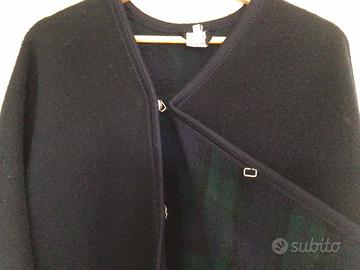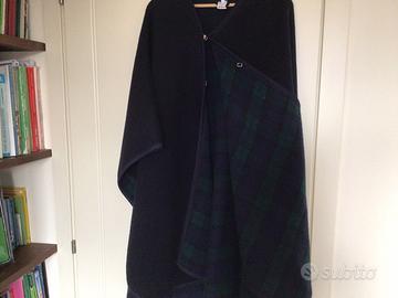 Mantella da donna in pura lana vergine. Colore blue scuro ed interno scozzese a piccoli riquadri verdi/blue. Molto morbida, ben rifinita, usata poche volte.