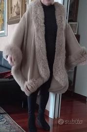 Mantella in maglia tessuto di cachemire con bordo in volpe. Bordo pelliccia asportabile per uso primavera . Vestibilità per tutte e grande eleganza