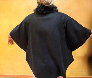mantella con bottone di chiusura al collo e pelliccia. Taglia unica.