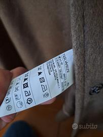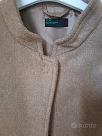 Mantella-cappa in lana color tortora. Collo alla coreana, allacciatura con bottoni a clip. Presenza di due fori laterali per le braccia.