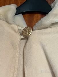 Bellissima e calda mantella color panna con cappuccio orlato di pelliccia ecologica e bottone dorato. Usata solo un paio di volte. Perfetta per cerimonie e occasioni speciali. Taglia unica