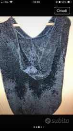 Mantella pesante donna in pelo nero, utilizzata pochissimo, con cappuccio Taglia Unica