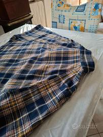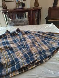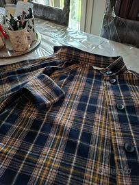 Stile: look vintage e senza tempo. Il motivo scozzese nei toni del blu e dell'ocra è ritenuto facile da abbinare a capi basic come jeans o pantaloni scuri. Presenza di due ampie tasche anteriori.