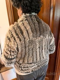 Elegante mantellina coprispalle vintage in vera pelle di coniglio e raso.