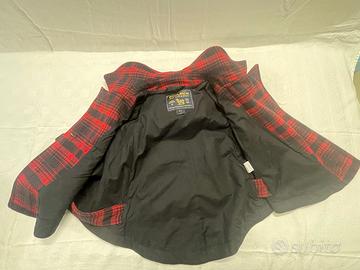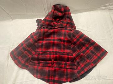 Mantella della Woolrich corta taglia M in tessuto di lana scozzese rossa e nera con cappuccio e cintura asportabili. Lunghezza davanti cm. 46 dietro cm. 54 Maniche a pipistrello. La mantella si puo' usare anche sopra una giacca un cappotto o un piumino