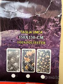 Mantello da stregone/strega/mago/maga per costume di Carnevale/Halloween, colore nero traslucido con icone in color oro.