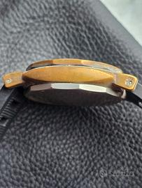 Orologio pari al nuovo, tiene bene il tempo, full set, con doppio cinturino, uno in pelle marrone bellissimo e uno in gomma molto tecnico, entrambi con una bellissima fibbia enorme in ottone loggata, card e caratteristico astuccio in pelle e con scatola in cartone.