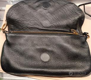 Pochette in pelle nera da polso con chiusura con logo in oro in calamita.